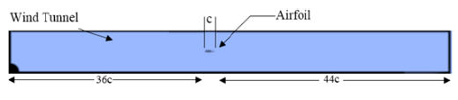 The RFOIL software used in [3] based on BEM theory is compared with the current CFD results for Re = 5 x 105, α = 0°, c = 0.25 [m] and free transition. To ensure a develop flow that reaches the airfoil, a channel length of 36c upwind, 44c downwind and a blockage ratio of 20% is designed [Figure 13].