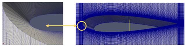 A Cartesian orthogonal mesh is used and refined at the boundaries of the airfoil [Figure 14]. In addition, different meshes densities are analyzed for the Spalart-Allmaras fv3 turbulence model [Figure 15].