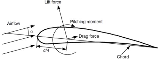 The wind flow incidence over the airfoil generates a force distribution along its surface, which can be decomposed into lift and drag force [Figure 4].