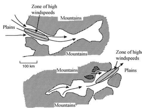 At this location, wind flow accelerates due to mountains that surround the river, which acts as a nozzle directing the wind to a smaller section [Figure 6].