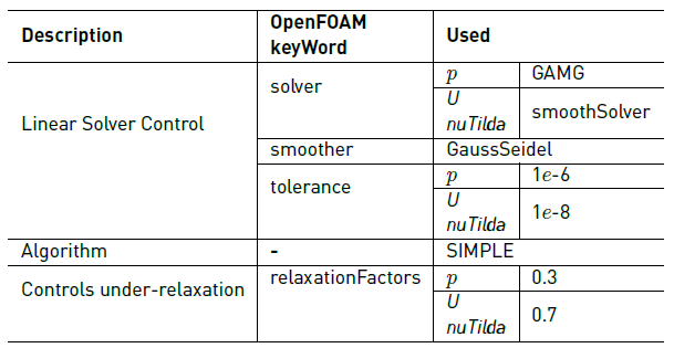 The “simpleFoam” solver is validated by using the Spalart-Allmaras fv3 turbulence model by its accurate results with a difference of 12% in comparison with experimental tests from literature.