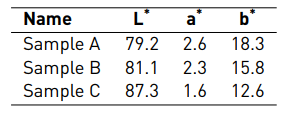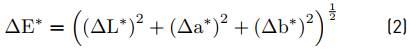 In the UV-Vis spectrophotometry tests the color coordinates of the new formulations [Table 3] and the color difference of the samples were estimated following ISO 11664-4 (2008) [20] according to the Equation (2).