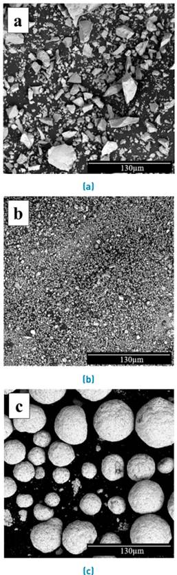 Figure 1 shows the VITA-VM9, Al2O3 and 3Y-TZP powders with average particle sizes of 13.74 μm [Figure 1a), 3.39 μm [Figure 1b) and agglomerates of 36.87 μm approximately [Figure 2c).