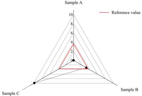 Figure 3 shows the values obtained, where sample B is close to the standard sample A. While sample C is the one that had the most distant results. From these measurements it is possible to conclude that at high percentages of mixture of Al2O3-3Y-TZP color changes occur with respect to the standard sample. These results are attributed to the translucency depending on the percentage, shape and particle size of the material added, in addition to the difference in the refractive index of the base material with respect to the material added [21].