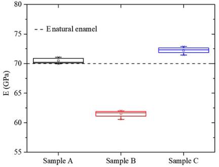 On the other hand, it was observed that the values obtained for hardness, Young´s modulus and fracture toungness were within the values reported for natural enamel [28]. It would be expected that in the long term the wear of the tooth that is in contact with this modified porcelain would be very similar to that presented between tooth-tooth.