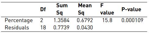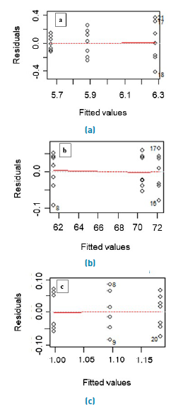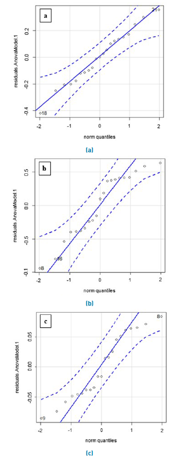 In order to validate the resultant models of the ANOVA, the residuals were calculated and the verification of the assumptions of normality, homoscedasticity and independence was carried out.