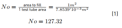 The knowledge of the test-tube area enables us to calculate the amount of test-tubes required for filling up 1m2. The ratio of the area-to-fill with respect to a test-tube value, which is represented by No is deduced, as expressed by Equation (1):