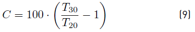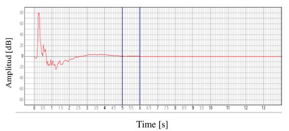 With the aim of determining the modal influence in the reverberation time measurements, the Normative ISO 3382-2 presents the C parameter, calculated through the Equation 9, which relates the evaluation ranges of 20 dB and 30 dB; in this way, the decrease of the curve linearity can be determined, and with this parameter, the reverberation time may be calculated.