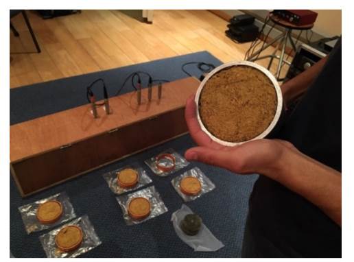 In order to cover, in an effective manner, the whole area of the sample holder of the impedance tube [Figure 1], it is necessary to use a mold that gives shape and consistency to the fiber, elaborated in a 10,16 cm PVC pipe (equivalent diameter of the impedance tube). In order to give the desired thickness, 2.54 cm sections are cut. Finally, sample compaction of fiber by pressing to conform test specimens was performed through wood pieces sealing the mold, and on top of them, 2 Kg weights were placed during 7 days [Figure 2].