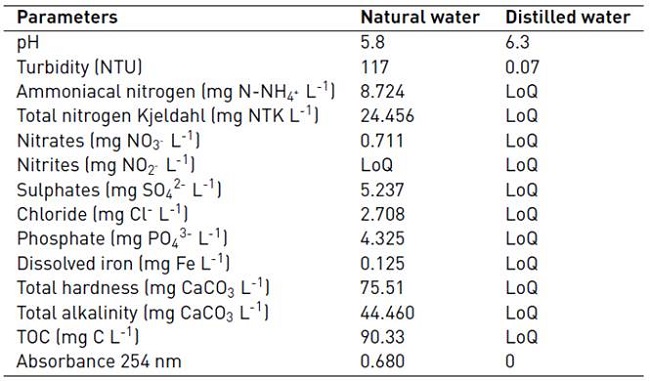 For the MC-LR removal experiments, natural water from a wetland located in “El Porvenir”, in Rionegro (Antioquia, Colombia), and distilled water were used. Their physicochemical characteristics are listed in Table 2.