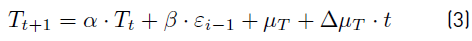 where Tt+1 = temperature projected at month t+1; Tt = temperature at month t; µT= mean monthly temperature; Ɛ= random term N (0, 1); α, β= model coefficients; ∆µT = projected average monthly increase of the variable.