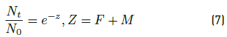 Where, t = time in months; N0 = initial population (individuals); Nt = number of individuals in t; F = fishing-catch coefficient (1/month); M = natural death coefficient (1/ month); Z = total deaths coefficient.