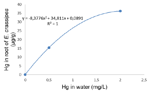 With the information reported by [27], we adjusts a polynomic curve to calculate the Hg absorption equation (AbsEc) as a function of the Hg concentration in water [Figure 10 and Table 3].