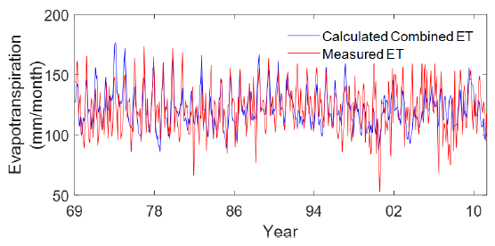 We normalize the values by subtracting the average and dividing by the standard deviation of the same series for each method. After assigning a weight to each series, we add the actual average (µer ) and multiply by the standard deviation of the measured ET(σer ). Figure 7 compares the measured ET with the generated for the historical period (6).