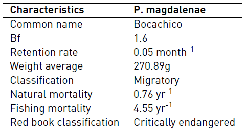 Table 1 shows general characteristics of bocachico (P. magdalenae) used in the fish balance model