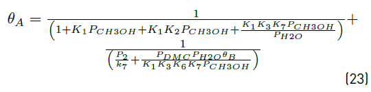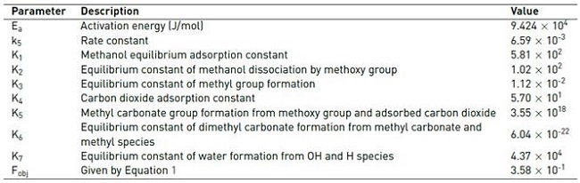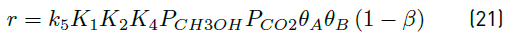 Reaction of adsorbed carbon dioxide with methoxy species, Equation (18), was chosen as rate determining step due to the slow activation of carbon dioxide [25, 47].