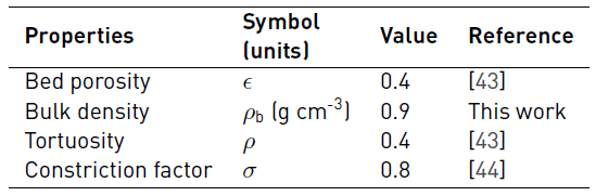 Bulk density was calculated as a ratio between mass and volume of the catalyst; both porosity and tortuosity were assumed as 0.4 [43], while the constriction factor value was taken from literature [44], Table 5. The Weisz and Prater criterion calculated at the highest observed reaction rate was 0.15, that is, below the limit of 1.