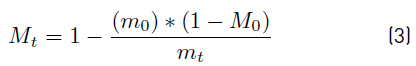 with Mt equal to the humidity of the samples at time t, mo the initial mass of the samples, mt the mass of the sample at time t, and M0 the initial humidity of the sample. These equations are valid for the grain with and without parchment, as well as for just the parchment.