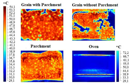 A similar investigation [9] indagated the non-uniformity of the surface temperature of cereal grains and oilseeds dried by microwaves. For the author, this non-uniformity is the biggest drawback in this type of drying.