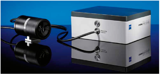 To obtain the spectral reflectance signature, the Corona Plus Remote spectrometer [Figure 2], marketed by the German firm Carl Zeiss, was used. This is a laboratory equipment that has a measuring head that is connected to the central unit using fiber optics and this unit in turn connects to a PC for the analysis of the data and visualization of the results via the Ethernet interface. Its reflectance measurement range is from 398 nm to 1,702 nm in 422 bands, with a spectral resolution lower than 10 nm, sensing a circular area of sample with approximately 2.5 mm radius, equivalent to 20 mm2. The curves were obtained reading in points along each leave with separations between 20 and 30 mm approximately, without taking into account that the reading is made on a contaminated area or not.