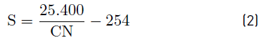 CN, has an inverse relationship with the infiltration (S), it has been possible to relate as shown in Equation (1):