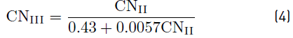 The values adopted by CN are between 0 and 100, which makes it possible to determine more accurately and easily than S, which can have values between 0 and infinity. It can be expressed numerically as shown in Equation (2):