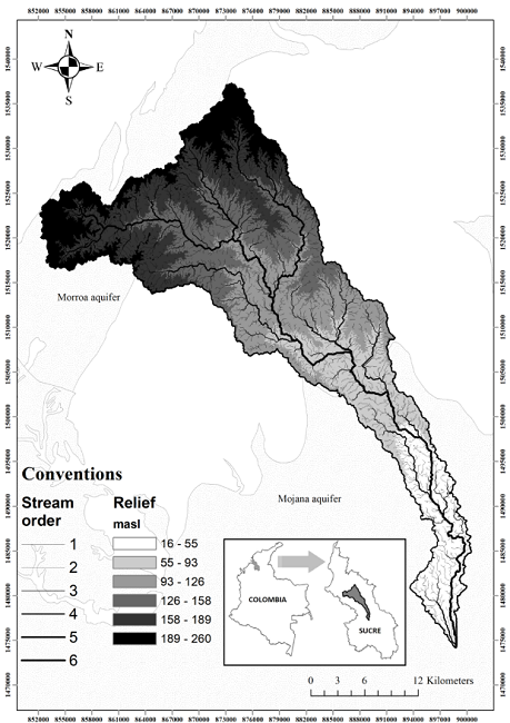 Potential infiltration and morphometry in the Arroyo Grande basin, Sucre Colombia