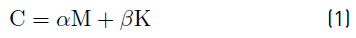 In Rayleigh damping, the damping matrix is a linear combination of mass-proportional and stiffness proportional damping terms as shown in Equation (1):