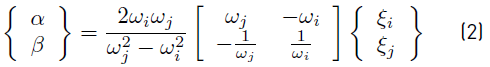 These coefficients have been evaluated from two specified damping ratios ((i and (j) and natural frequencies (ωi and ωj) corresponding to two “references” modes (i and j) of vibration, respectively as shown in Equation (2).
