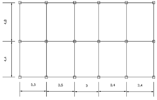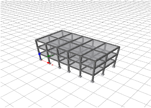 The building has a rectangular plan configuration as shown in Figure 1. The dimensions of the building are 16.6 m long and 8.8 m wide with a total height of 9.18 m in elevation and all the floors are the same height of 3.06 m.