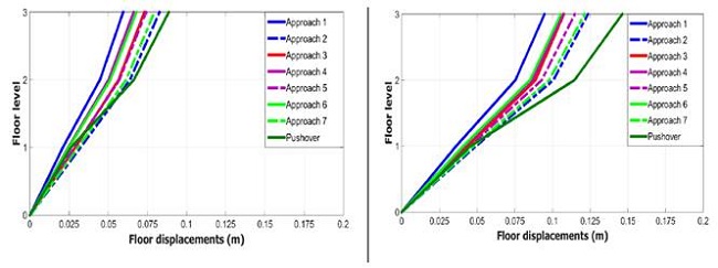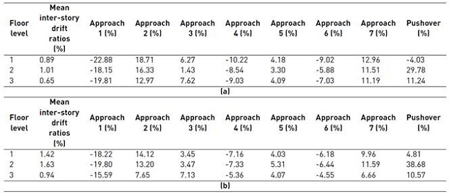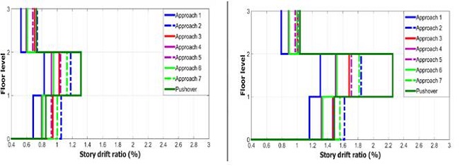 The Inter-story drift ratios are more important in the second floors in all approaches; because of the importance of the difference of displacement between the first and the second floor.