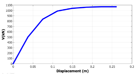 The capacity curve of the buildings obtained from nonlinear static (pushover) analysis under an invariant first mode load pattern is represented in Figure 3.