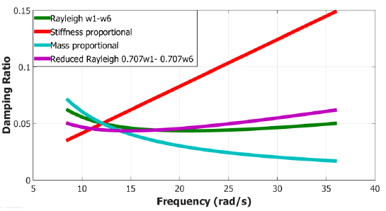 Figure 5 shows the damping ratio versus frequency curves for different approaches with the damping coefficients α and β computed using ζ=5%.