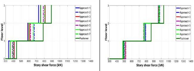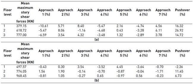 The differences in magnitude of maximum story shear forces between structural responses obtained with different approaches have been quantified by computing ratios for two seismic intensity measures [Table 5].