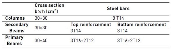 Concrete characteristic compressive strength equal to fck = 25 N/mm2 and steel characteristic yielding strength equal to fyk = 400 N/mm2 are adopted. The member cross-section sizes and steel bars are given in Table 1.