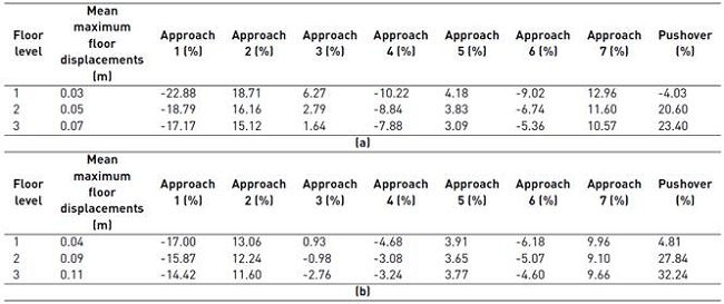 Different approaches yielded structural responses whose amplitude differences in maximum floor displacements were quantified by calculating ratios for two measurements of seismic intensities. [Table 4].