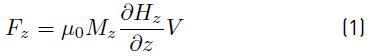 is always negative. Since V and µ0 are positive, then, according to Equation (1), the sign of Fz is opposite to the sign of Mz .