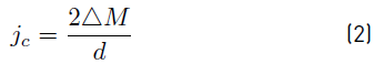 The relations between the magnitude of the current density and the magnetization for a rectangular-like and disk-like geometry are given by Equations (2) and (3) respectively