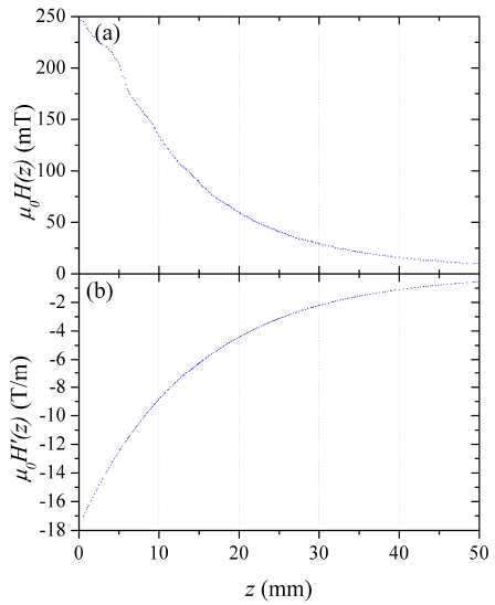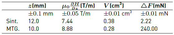 Figure 6 a and b show both the magnetic field of the permanent magnet and the corresponding field gradient respectively, which were used to determine the magnetization of the samples (Equation (1)], and the jcF values (Equationes (2) and (3)].
