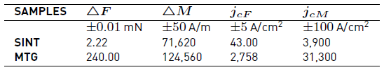 As displayed in Table 2, the jc values obtained from ∆F measurements (jcF ) are smaller than those (jcM ) obtained from magnetization measurements ∆M, using a Vibrating-Sample Magnetometer. The uniform field approximation used to determine the jc values could be one of the main reason of the observed differences. However, in both cases for the two types of superconducting samples analyzed, it is possible to observe a remarkable difference between sintered and texturized samples. It is worth highlighting that the method we used for determination of jc allows us to observe differences as those obtained from magnetization measurements for samples prepared by different routes.