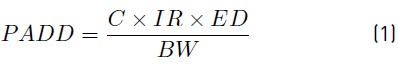 where C is the concentration of PM2.5 (µg/m3), IR is the intake rate (m3/d), ED is the exposure duration (h/d) during a 1-year period, and BW is the body weight (kg) of the cyclist. IR is assumed according to the average traveling speed during the monitoring protocols based on inhalation rate values recommended by the International Commission on Radiological Protection (ICRP). For male adults, IR is 1.5 m3/d, and for adult females it is 1.25 m3/d for light effort. In the case of moderate/strong effort, IR for male adults is 3.00 m3/d, and for female adults it is 2.70 m3/d [45]. PADD is a key measure to understand the actual amount of pollutant that reaches the tissues of the exposed individual [46], thus the monitoring of air quality is necessary but not enough to study the potential threat that pollution may have on active individuals as the bicyclists.