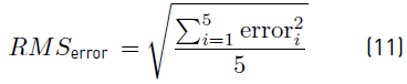 RMS calculation of the error considering all the 5 samples and all combinations, according to Equation (11):