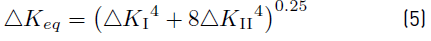 1. Calculation of the equivalent stress intensity factor ΔKeq . The numerical results are used to evaluate the two criteria defined by Equations (5) and (6).