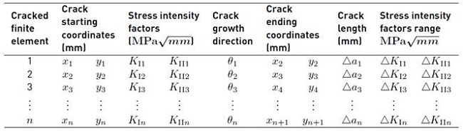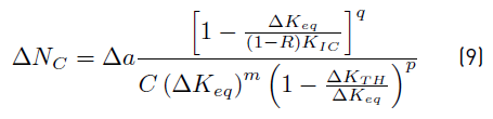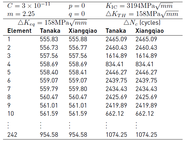 Where ΔNc is the number of cycles calculated for the crack growth Δa through the corresponding finite element.