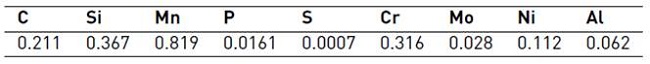 Table 3 shows the chemical composition of the steel obtained using Optical Emission Spectroscopy and conforms to the designation DIN 1.8721 for a low alloy steel.