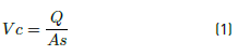 where Vc is the capture velocity, Q is the total flow rate and As is the plan surface area.