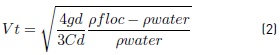 where g is acceleration due to gravity, d is the diameter of the particle, Cd is the drag coefficient, (floc(floc is the density of the flocs, (water is the density of water.