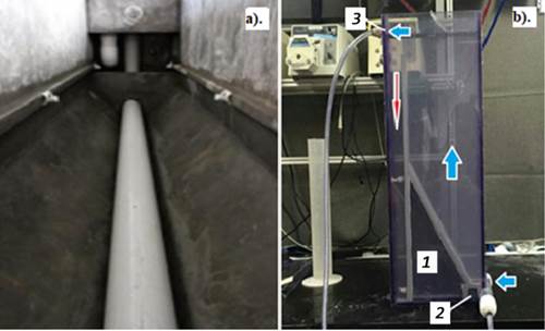 The use of clear PVC and the relocation of some parts allow visibility and accessibility in the experiments. The parts of the tank are easy to connect and the plate settlers could be moved to facilitate the adjustment of the geometry of the tank if it is necessary to develop future work.