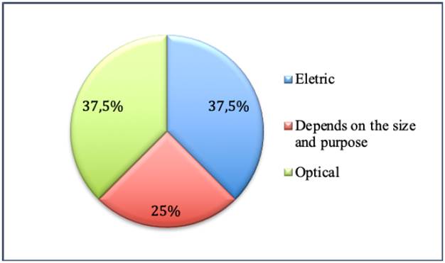 The most used technologies were found to be based on optical and electrical networks. It was found that 37.5% of the experts believe that the best technology is optical, while the same percentage of experts believe that electrical networks are estimated to provide the best cost-benefit. The other 25% of surveyed experts reported that the most cost-effective technology depends on the network size as well as the goal.