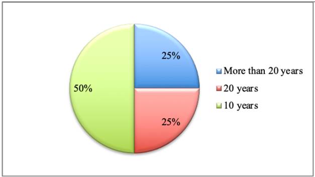 However, it is known that these systems are very expensive in medium and small buildings, thus making their use unpopular. A question was included in the survey regarding the amount of time projected for the systems to be viable in medium-sized buildings. The options included: 5 years, 10 years, 15 years, 20 years, or over 20 years. The results are depicted in Figure 4.